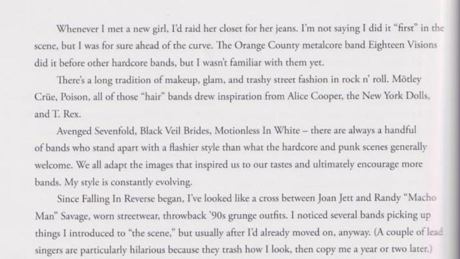 ronnie's claims about scene fashion here are 110% false; you see similar looks from AFI among others well before him, but here's my citation that his claim of any beef with MIW before 2022 is BS, since they are mentioned in the same breath as one of his senpais and his Max replacement (p. 56, 58 in the PDF)
